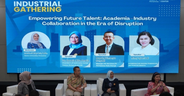 Kesenjangan ini mendorong Universitas Pertamina (UPER) menggelar Industrial Gathering bertema “Empowering Future Talent: Academia–Industry Collaboration in the Era of Disruption” di Auditorium UPER, Jumat (26/9). Acara ini dihadiri oleh Dr. Rosaria Mita Amalia (Presiden Indonesia Career Center Network/ICCN), Rinny Syafriadi (Koordinator Bidang Pembinaan Instruktur Swasta, Kemnaker), dan Abimanyu Suryadi (Manager HC Services PT Pertamina Hulu Energi), serta dipandu oleh Sari Widyanti, M.En., Dosen Teknik Geofisika UPER.